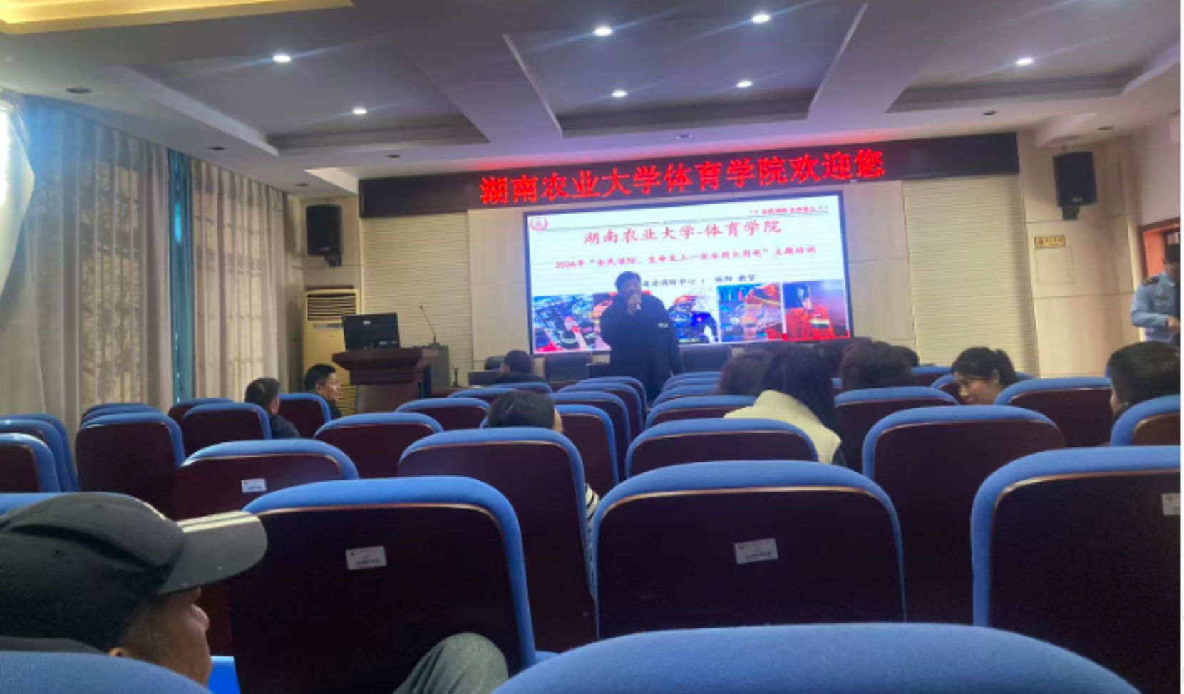 (供稿:廖胜文)yl88858永利集团为切实加强消防安全管理,普及消防安全知识,提升消防安全意识,2026年1月13日,学院特邀湖南省进安消防中心林阳教官在10教137教室进行了消防安全知识培训,学院全体教职工参加了此次培训。