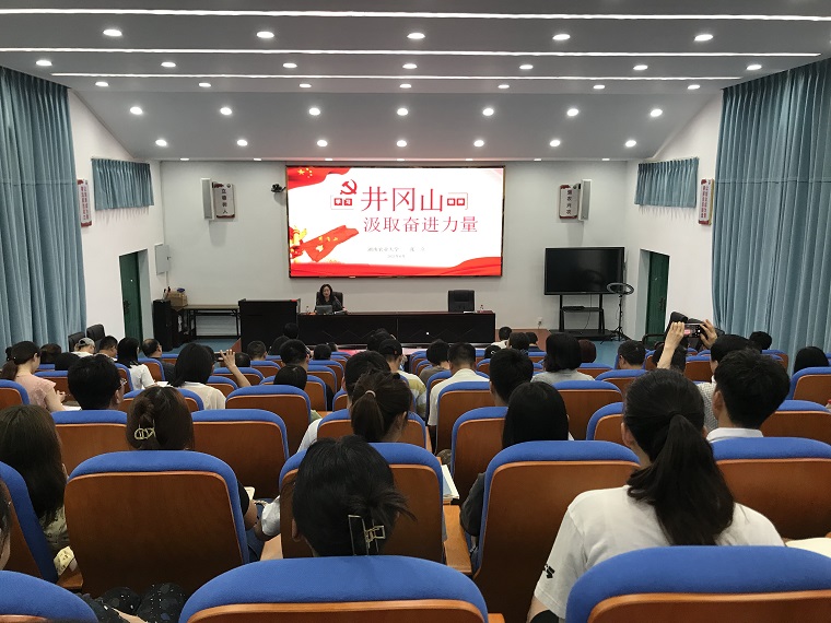 张立副校长通过大量历史事件,生动形象地从井冈山(市)与井冈山革命根据地、井冈山精神的主要内容、井冈山精神的内涵与启示、井冈山精神的地位、井冈山精神的时代意义五个方面深刻阐述了井冈山是中国革命的摇篮,井冈山的革命斗争不仅点燃了中国革命的星星之火、开辟了中国革命的独特道路,而且孕育出伟大的井冈山精神。井冈山精神的产生,是中国近现代历史发展的必然结果,是以毛泽东同志为代表的中国共产党人在井冈山创建革命根据地、开辟中国革命新道路、进行艰苦卓绝的革命斗争中培育和形成的革命精神。