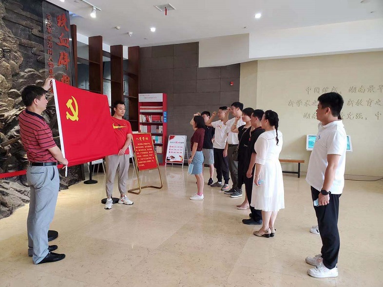 随后,同志们来到了辛亥革命纪念馆,各支部举行了重温誓词活动。在导游的讲解下,大家了解到黄兴、宋教仁、蔡锷、蒋翊武等60位湖南人士的生平事迹。通过观看实物、雕塑、文字、图片景等深刻了解到湖南在辛亥革命中的历史进程和地位,湘籍仁人志士对辛亥革命做出的伟大贡献。