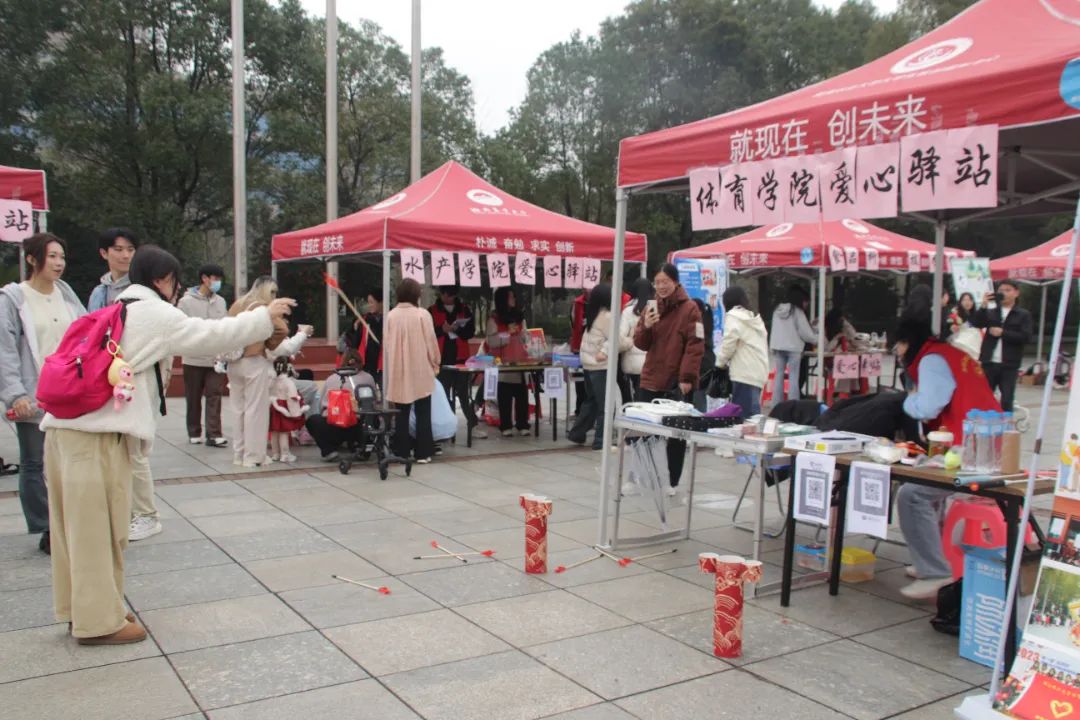义卖现场天气虽然阴雨绵绵,寒风扑面,但修业广场却满是温暖,摊位上的义卖物品种类丰富,有书籍、毛绒玩偶、球拍、小饰品等,同时现场还有投壶创意游戏吸引大家参与活动奉献爱心。志愿者们热情洋溢,积极向同学们进行宣传,热闹非凡,叫卖声,欢笑声不绝于耳,每一件物品的售出,都代表着一份爱心的传递,一份温暖的延续。