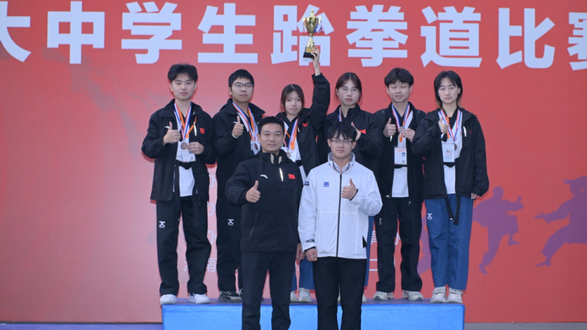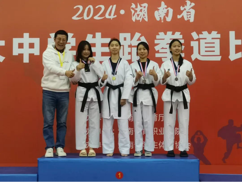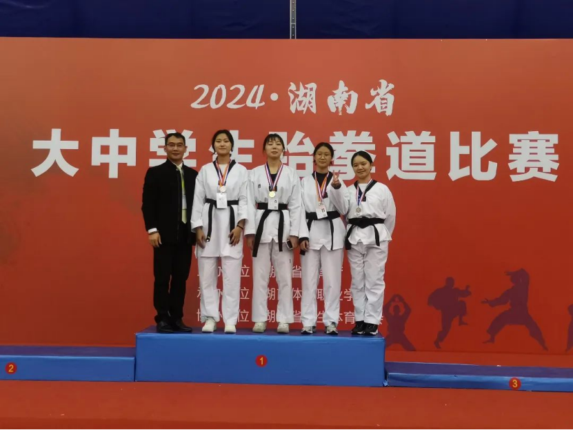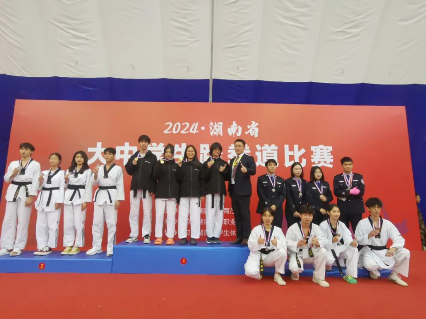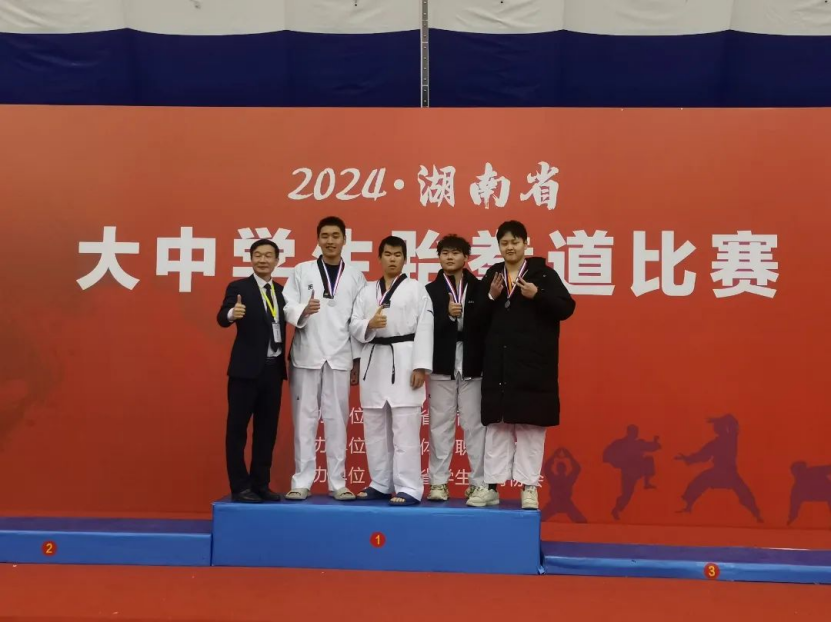 殊荣的背后,是学院党政领导高度重视“健体修业”建设,跆拳道队的建立,更是在学院领导正确领导、高度重视和鼎力支持下进行的,学院领导在跆拳道训练场地、训练器材和后勤保障方面给予了全方位支持。学校跆拳道队是一支最为年轻的跆拳道队伍,建队时间仅一年有余,大多数队员入队仅一学期,在教练带领下,在傅萧湘、廉君、曾齐晟三位队长协助下,全体队员坚持日复一日的艰苦训练与辛勤付出,坚持挑战自我、挑战极限,他们用一滴滴汗水浇灌胜利之花,用坚韧不拔、敢于挑战的体育精神诠释着对跆拳道运动的热爱与执着。展望未来,湖南农业大学跆拳道队将接续奋斗、砥砺前行,敢于拼搏挑战,续写更辉煌的篇章。