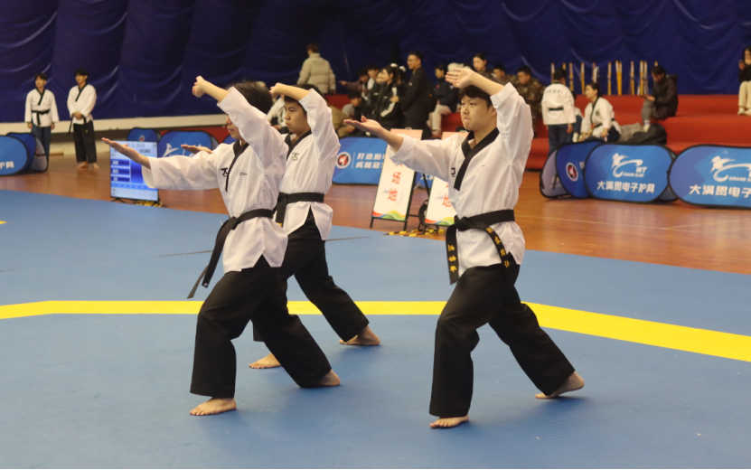 在品势项目赛场上,我校选手同样表现卓越。团体品势项目赛场上,李林嘉、胥九源、龚悦组成的甲组女子团体品势阵容,凭借默契的配合和精湛娴熟的品势技术,夺得铜牌。梁果、邬光正、刘钰华组成的甲组男子团体品势阵容也夺得铜牌。刘瑶、钟芊、李晶晶组成的乙组女子团体品势阵容,他们用行动诠释了跆拳道精神,谦逊有礼、刚柔并济、动作标准,最终获得第五名。廉君、钟淇、李玮东组成的乙组男子团体品势阵容,用力与美、标准与整齐获得第六名。在混双品势比赛中,李林嘉、梁果荣获甲组混双第五名;武睿玮、邬光正荣获甲组混双品势第七名。品势队员的礼仪风貌、严谨与标准、奋进与精益求精,充分展现了湘农学子的精神风貌。