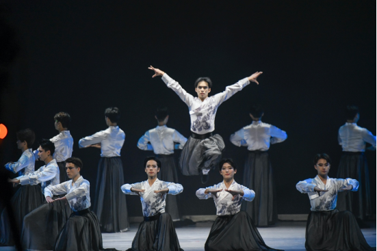 男子群蹈《国风墨韵》表演。中新网记者 杨华峰 摄