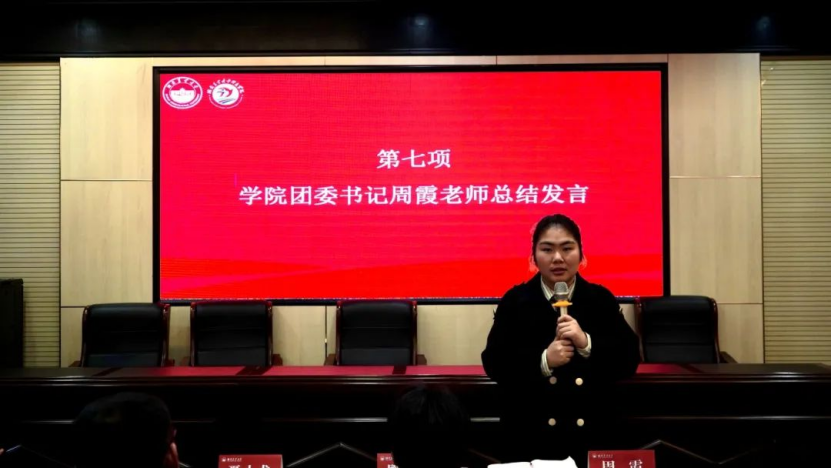 最后,学院团委书记周霞老师进行总结发言。周霞老师充分肯定了青服队过去一年的优异成绩,同时对新一届青服队提出殷切期望,希望他们持续发扬志愿服务精神,踊跃投身志愿服务活动,为公益事业贡献更大力量,在新的征程里铸就更多辉煌。