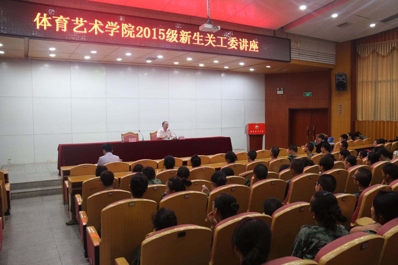 2015年9月5日下午15:30在八教学海厅,举办了一场面对全体新生的关工委讲座。主讲人彭克勤督导,讲座主题“爱国爱校爱学院,诚信做人做学问”。讲座主持人是体育艺术学院党委副书记兼副院长邵华。参加人员是院团委书记陈音竹老师以及全体团委学生会成员以及2015级新生。彭教授的讲座生动精彩,幽默诙谐,报告厅内掌声不断。
