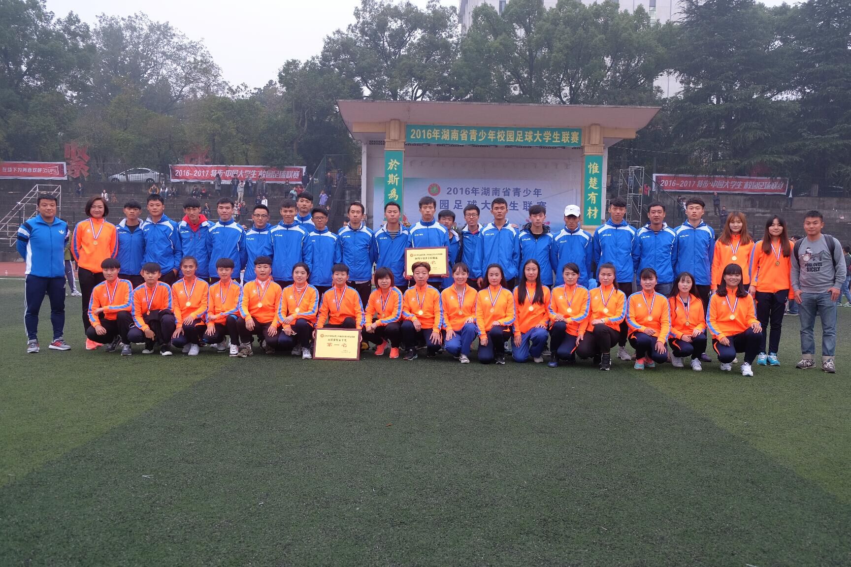 2016年湖南省大学生足球比赛于11月10日至16日在湖南大学举行,该次比赛由湖南省教育厅青少年校园足球工作领导小组办公室主办,汇集了全省37所高校,45支代表队共900多名运动员参加,赛事规模和参赛队伍为历届之最。我校男、女足球队参加了本次盛会并再创佳绩,女队获得本科女子组冠军,男队获得本科男子校园组第六名。