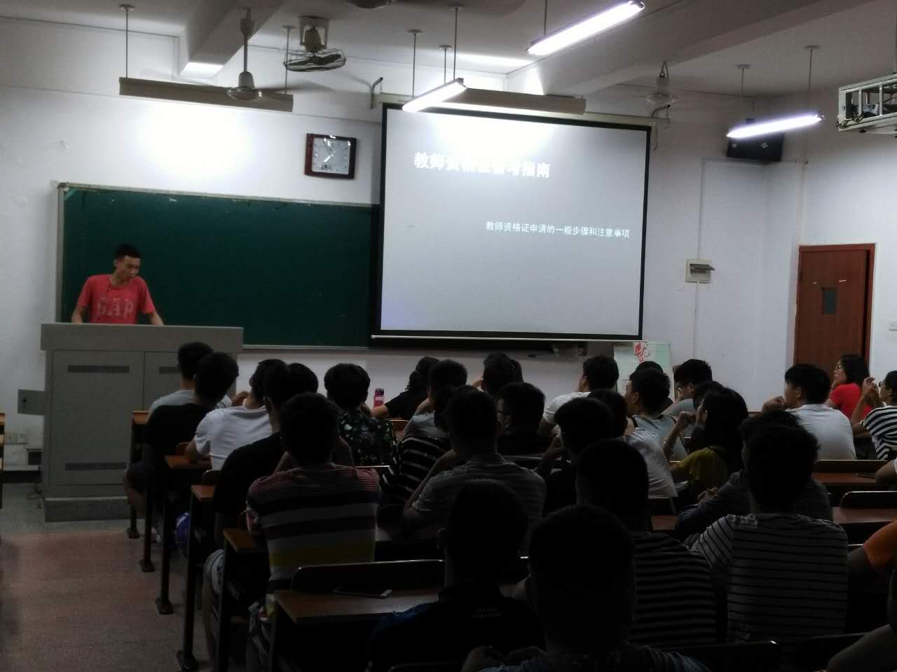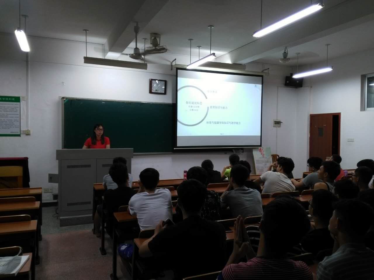 为了加强专业建设、提升体育教育专业学生对教师资格证考试的认知,5月31日晚在十教南137教室举办了教师资格证考证经验交流会。会议由体育教育系系主任齐立斌老师主持,交流会邀请了2013级龚亮洁、2014级张彪张彪同学担任主讲嘉宾,体育教育专业的全体学生参加了此次经验交流会。