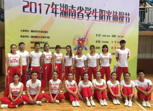 5月28-29日,湖南省阳光体操节在湖南师范大学yl88858永利集团隆重举行,学院派出由樊颖老师指导的健美操专业的19名学生参加了此次比赛,经过激烈的角逐,我系学生最终获得大学组全民健身操规定二级第一名和第三名,全民健身操规定三级第一名和第二名的骄人成绩。