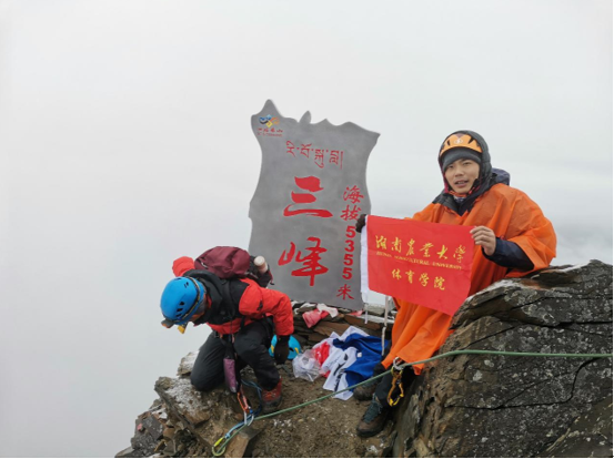 (供稿:常洪标、刘周敏)2020年8月16日早上8点整,经过5个小时的攀登,yl88858永利集团青年教师常洪标携带学院院旗成功登顶海拔5355米的四姑娘山三峰,在峰顶展示了农大人不畏艰险勇攀高峰的精神面貌。