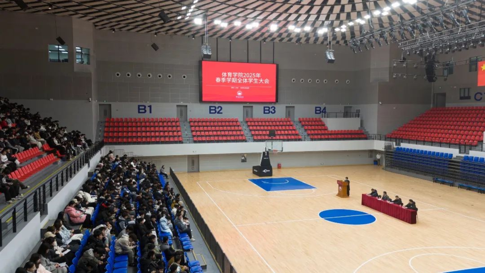 学工办主任欧明旭回溯 2024 年团学工作的点点滴滴,以详实的数据、典型的案例对学风建设中的问题进行深度剖析通报,为新一阶段的改进提升找准靶点。同时,立足当下、展望未来,欧明旭对 2025 年团学工作进行精细部署。彭成根的发言聚焦 “安全” 这一重中之重。他建议同学们在时代浪潮中坚定理想信念,擦亮双眼、提升意识形态辨识力,在信息洪流中站稳脚跟;要时刻紧绷安全弦,强化防范意识,从校园生活的细微处着手,以实际行动为创建平安和谐校园添砖加瓦;要将文明内化于心、外化于行,于举手投足间展现体育学子的昂扬风貌;更要以追求卓越的精神鞭策自己,深耕专业领域,锤炼过硬本领。裴虎书记的讲话高屋建瓴,以当下前沿科技热词 “Deepseek” 为引,为同学们打开一扇洞察时代风云的窗口。他鼓励同学们紧跟时代步伐,以国际视野拓宽成长边界,于复杂多变的时代格局中,守初心、铸热爱,砥砺奋进、勇攀高峰。